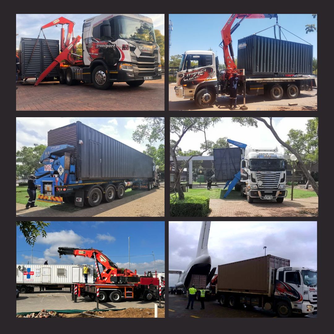 Our customers’ requirement has grown over the years and so has Jacobs Transport’s capabilities to satisfy their needs accordingly. For example, placing a container office unit over a tree on the fairway at a golf tournament, double stacking containers to maximize space availability, or place mobile coffee units in the middle of a busy shopping centre. This feat can only be mastered by using capable vehicles and qualified staff.