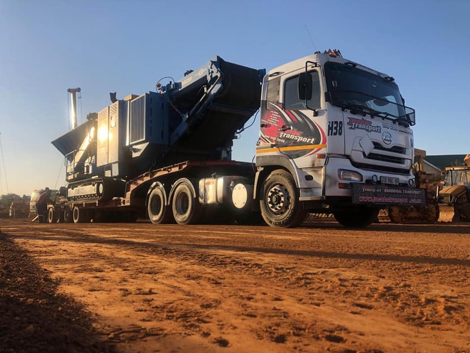 Jacobs Transport serves the mining industry in many ways! From the moment the shaft is sunk we assist with Yellow Metal, office parkhome units, containers, air coolant systems and a myriad of structures and other mine deliveries. The fleet is young and mine compliant to ensure we are able to pass the high Health and Safety requirements at the modern mine. Once the mine operation is in full swing Jacobs Transport assists with transporting the abnormal buckets or other ground engaging tools. The added advantage of being able to use the crane to load possibly defective vehicles does give us a competitive advantage.